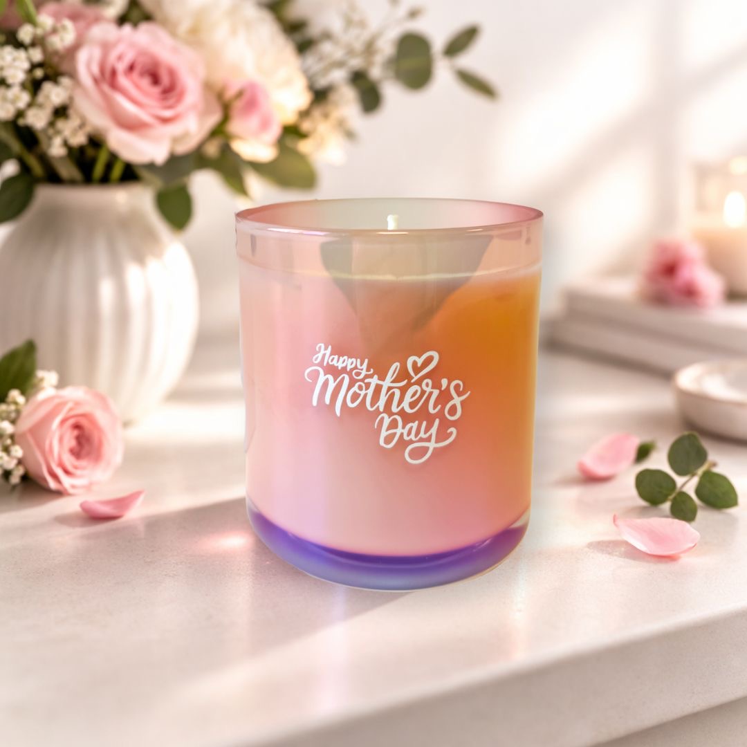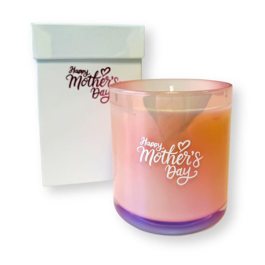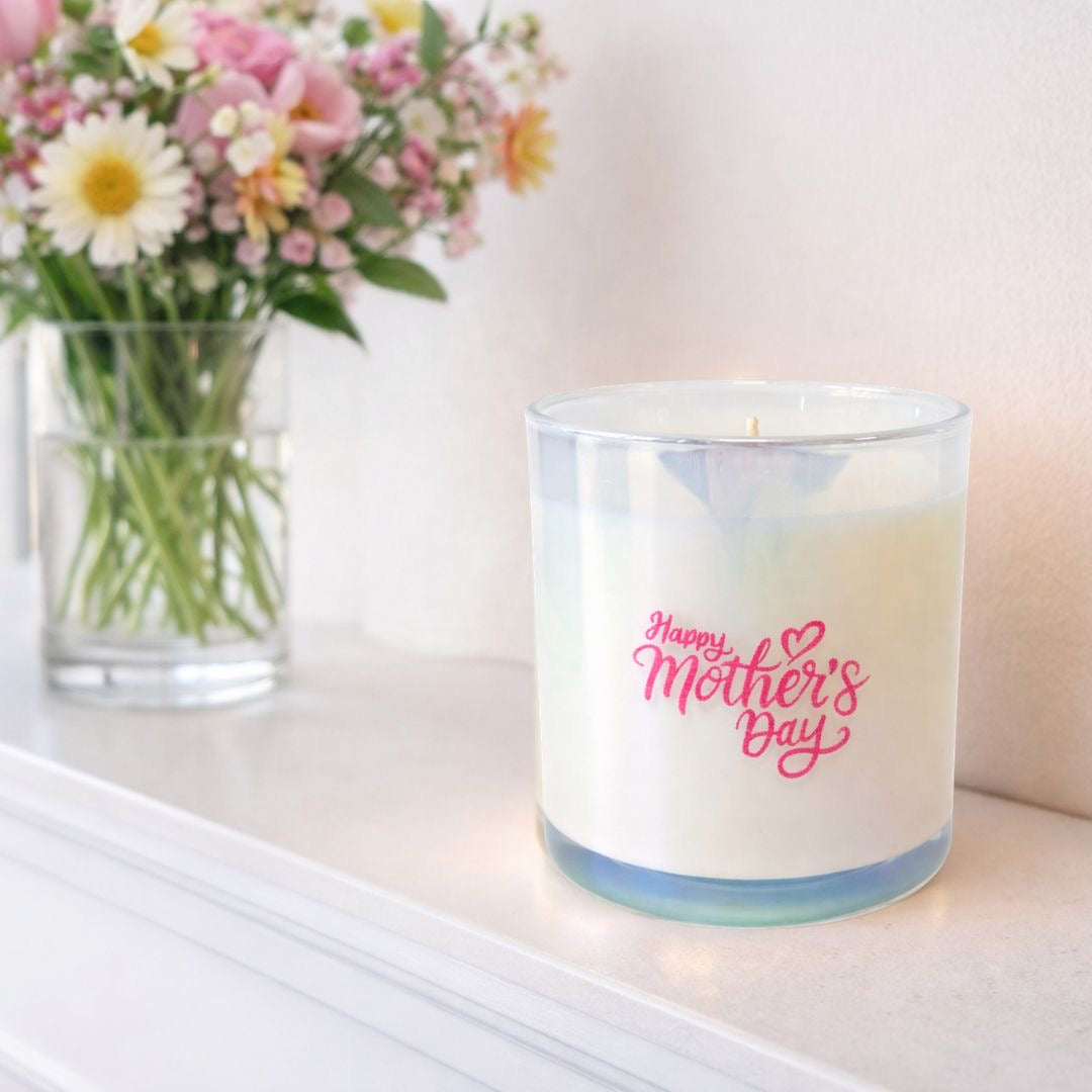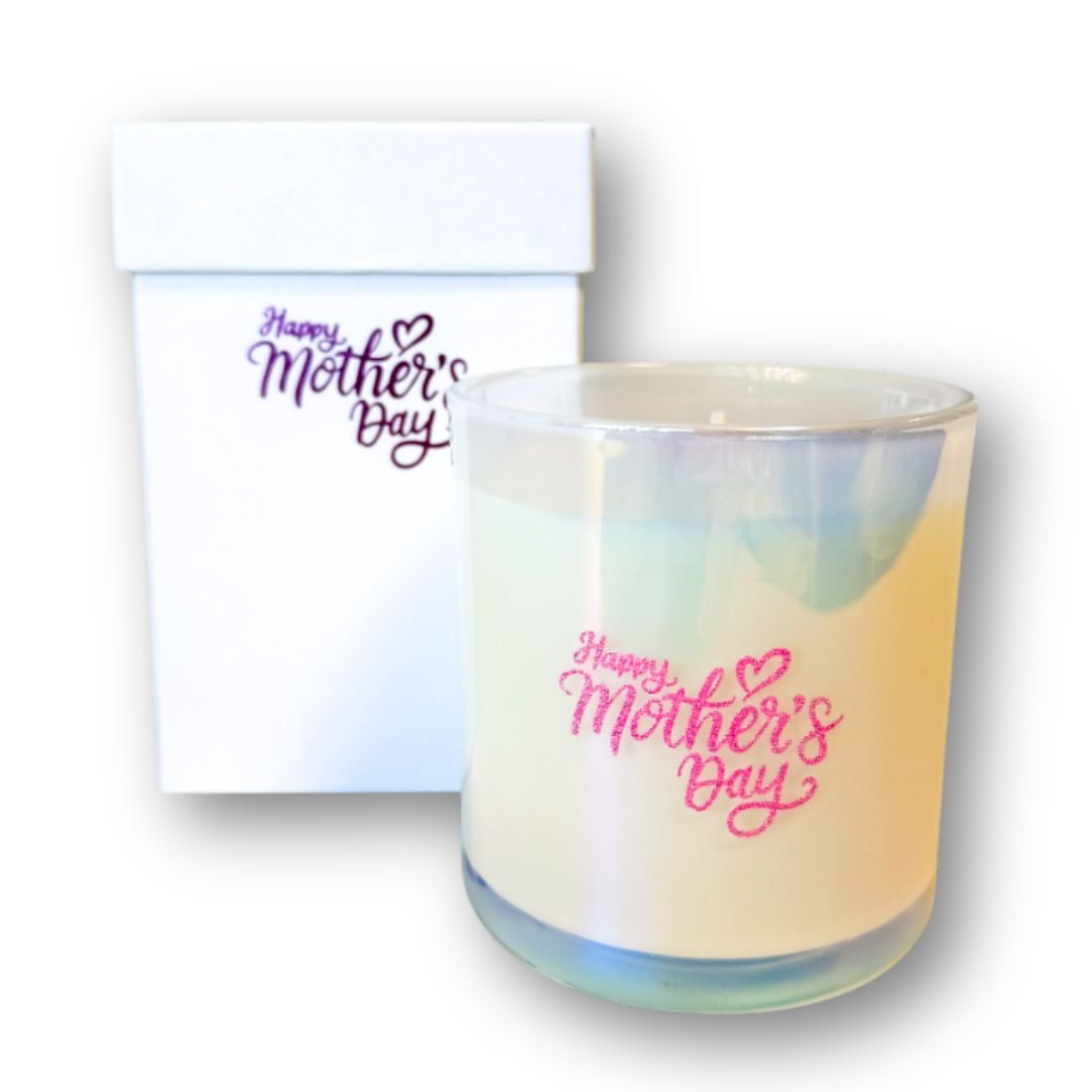 A 100% soy wax wax hand poured into a beautiful pearlescent white or pearlescent pink jar.