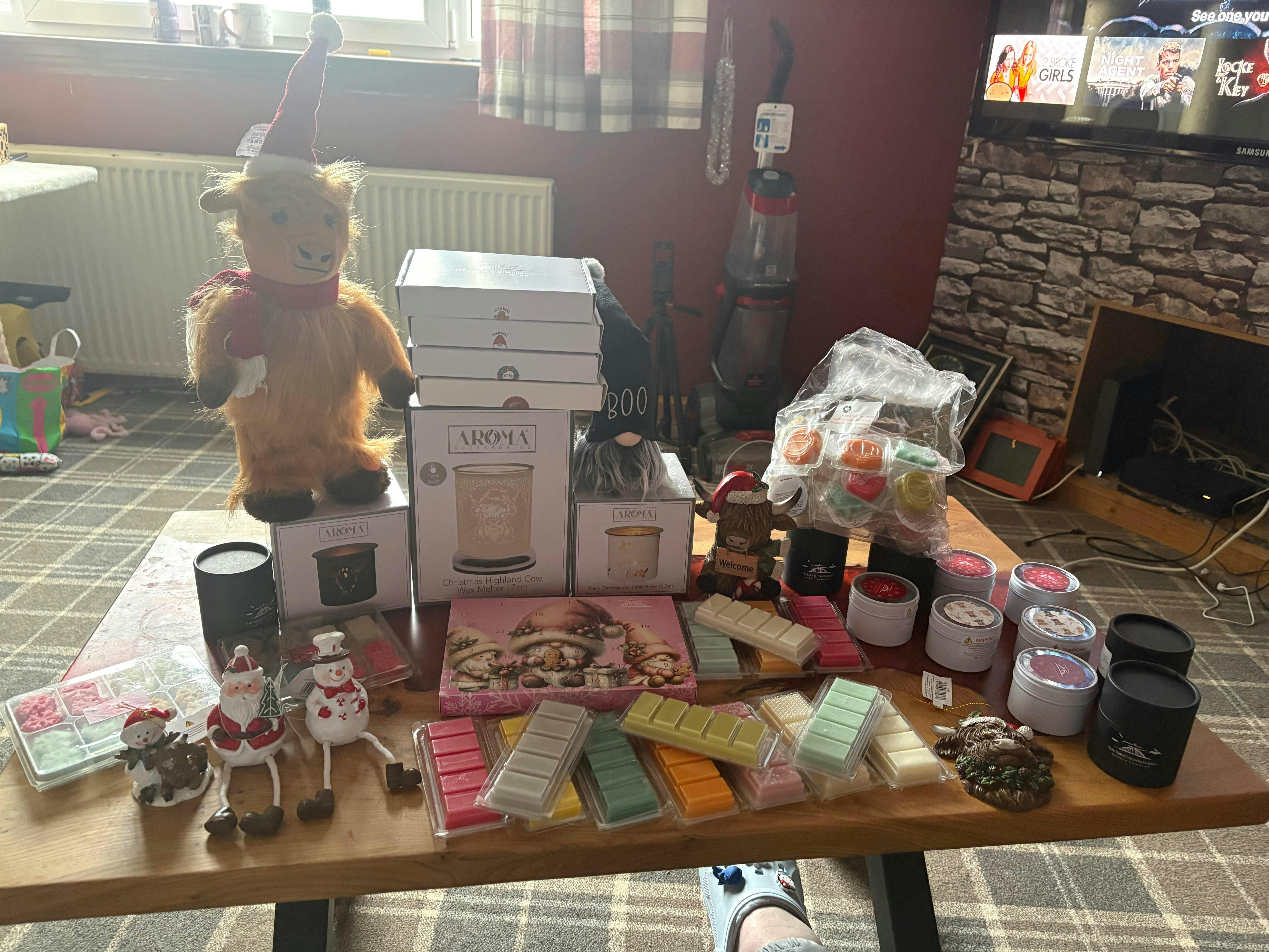 Each Mystery Box is packed which can be an irresistible mix of EVERYTHING, Wax Melts, Homeware (mugs, burners etc), Carpet Freshener, Room Spray and MORE! Every box is a unique surprise! Indulge in luxurious fragrances and decor that make your home feel cosy, fresh, and beautifully scented – for a fraction of the price.