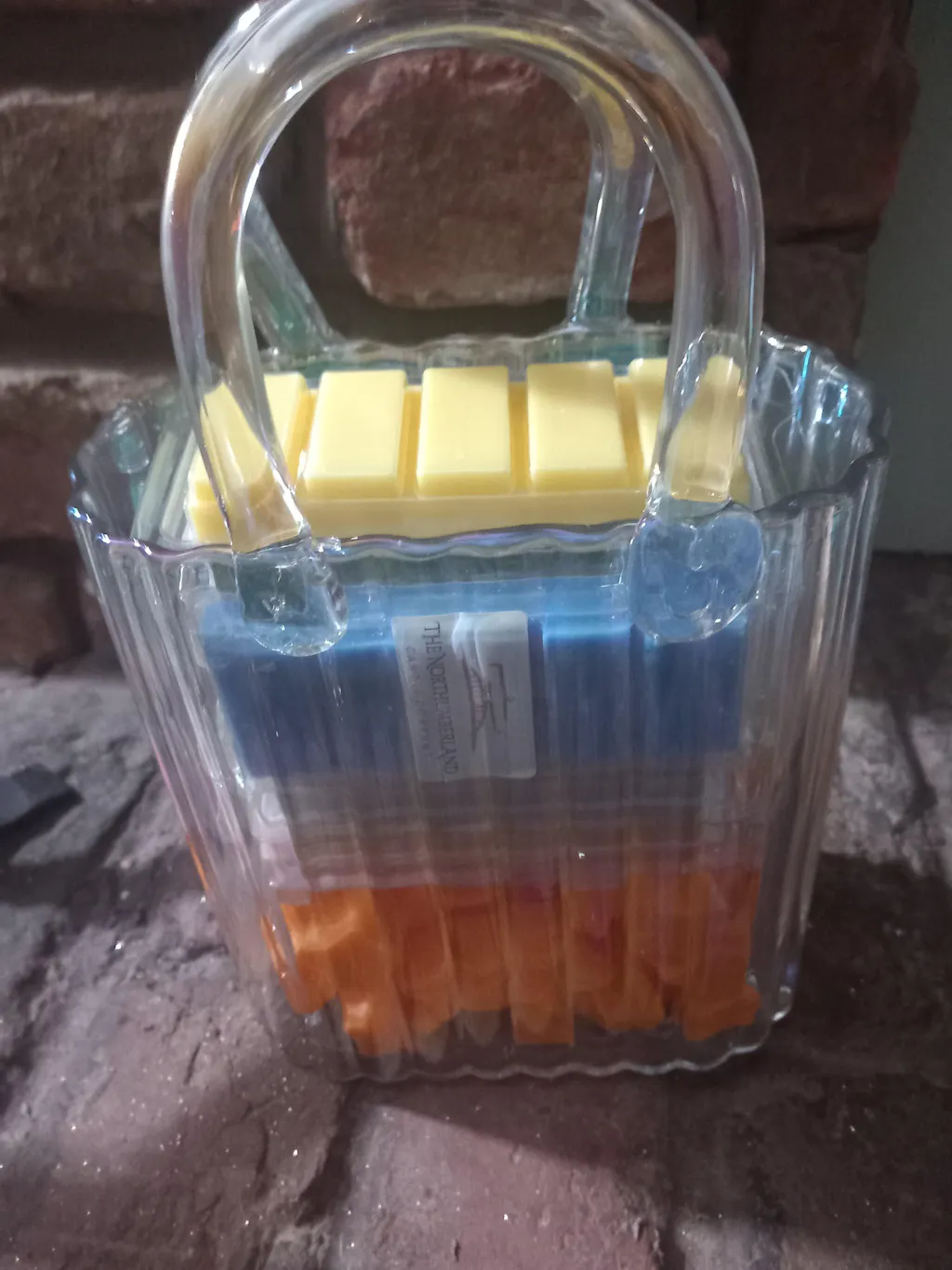 Beautiful glass handbag lve put mine on my hearth in the lounge, wax melts smell gorgeous..I've put my wax melts in the glass handbag I've ordered some more wax melts, l love them.